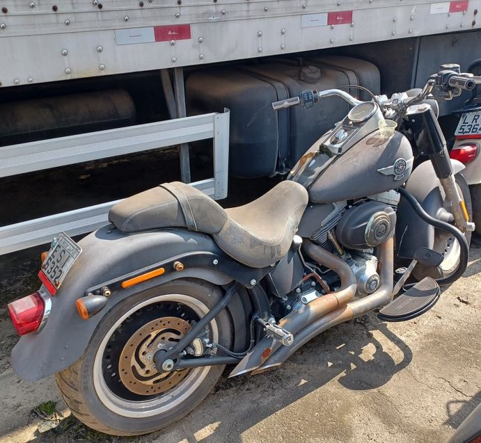 Motocicleta da Marca HARLEY DAVIDSON, Modelo FLSFB, cor PRETA, ano de fabricação 2012, Chassi 9321JN5J2CD032469, Renavan 00462524469, Placa ESI6352. Capacidade: 2 passageiros, Potência: 72 HP. Cilindrada: 1584, Combustível: GASOLINA
